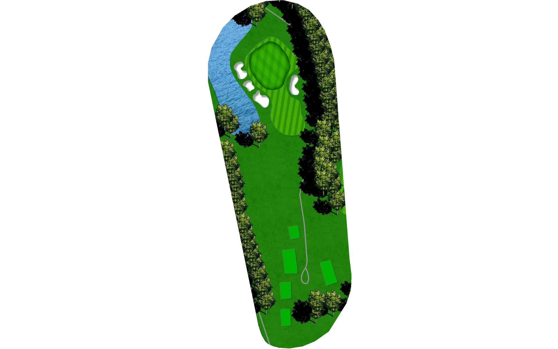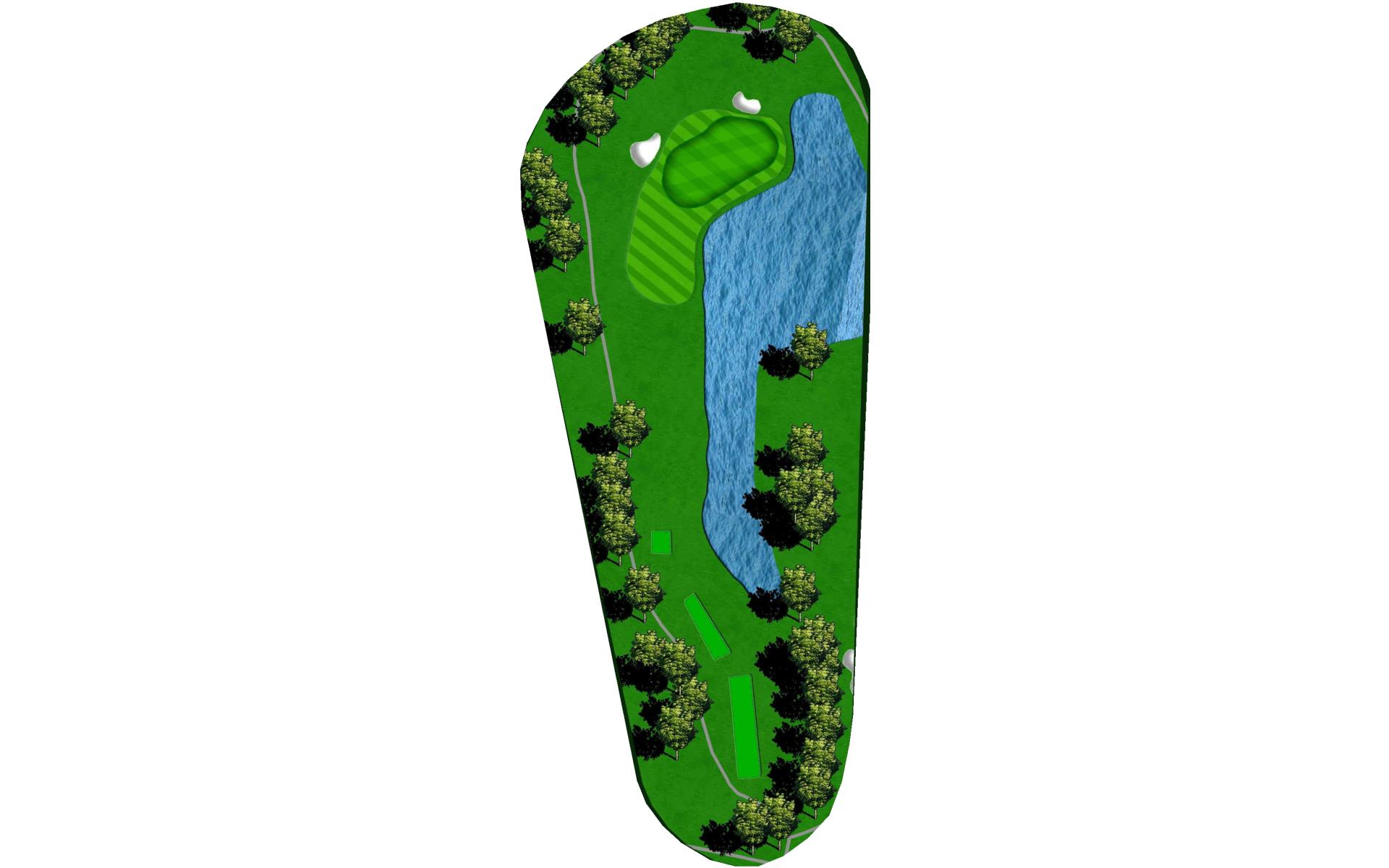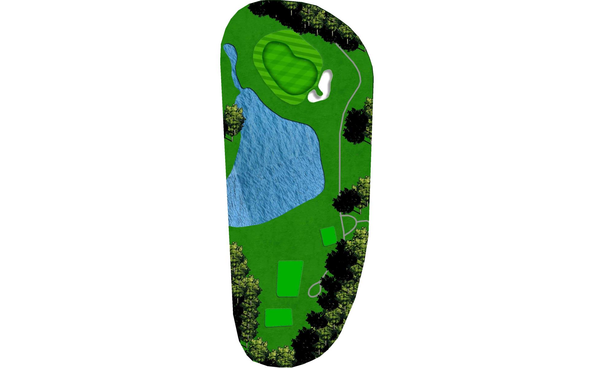 The last of our 5 par 3s, this one is definitely easy on the eyes. Play to the right to avoid the water and bunkers on the left; the ball naturally kicks right.